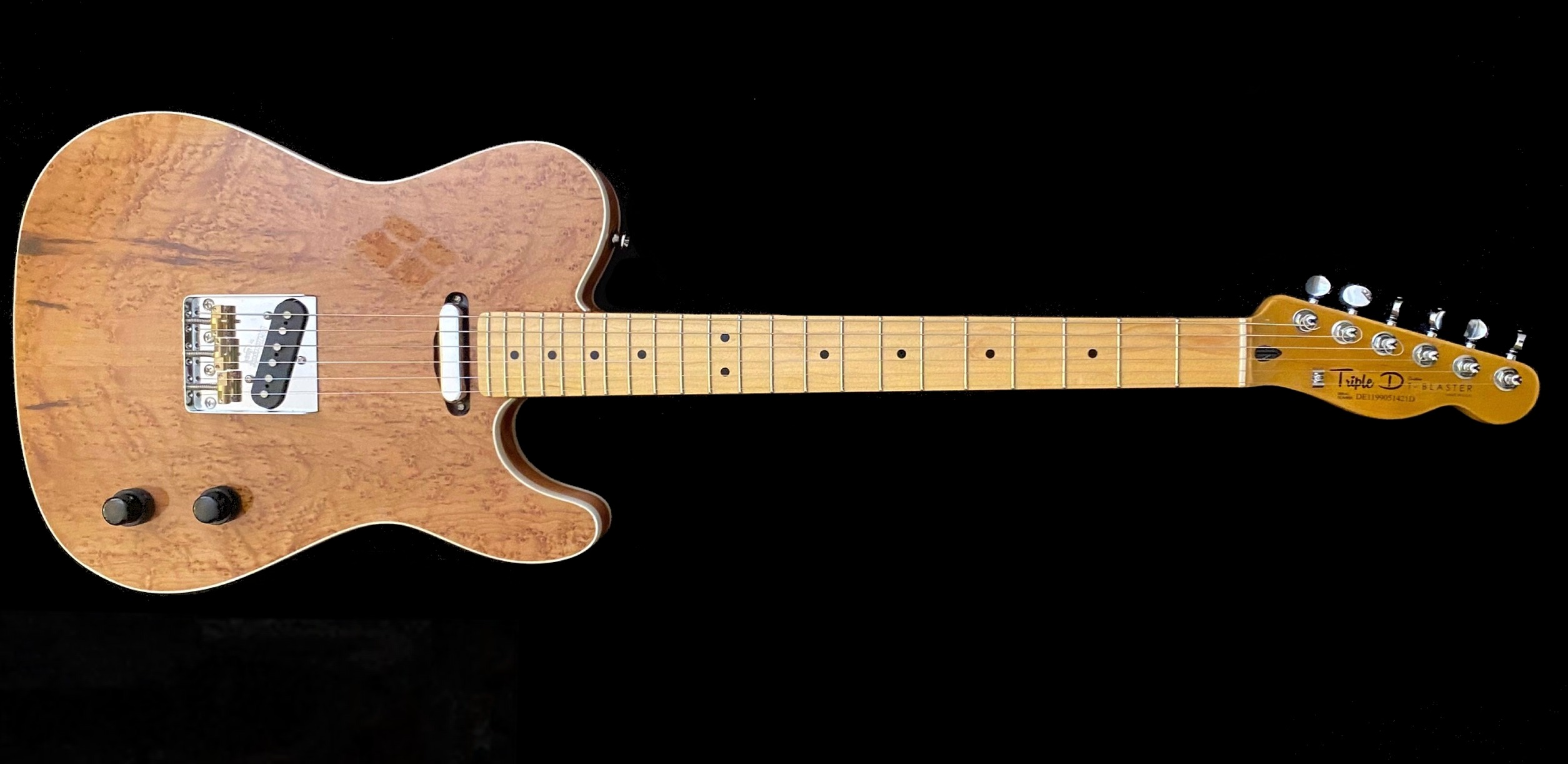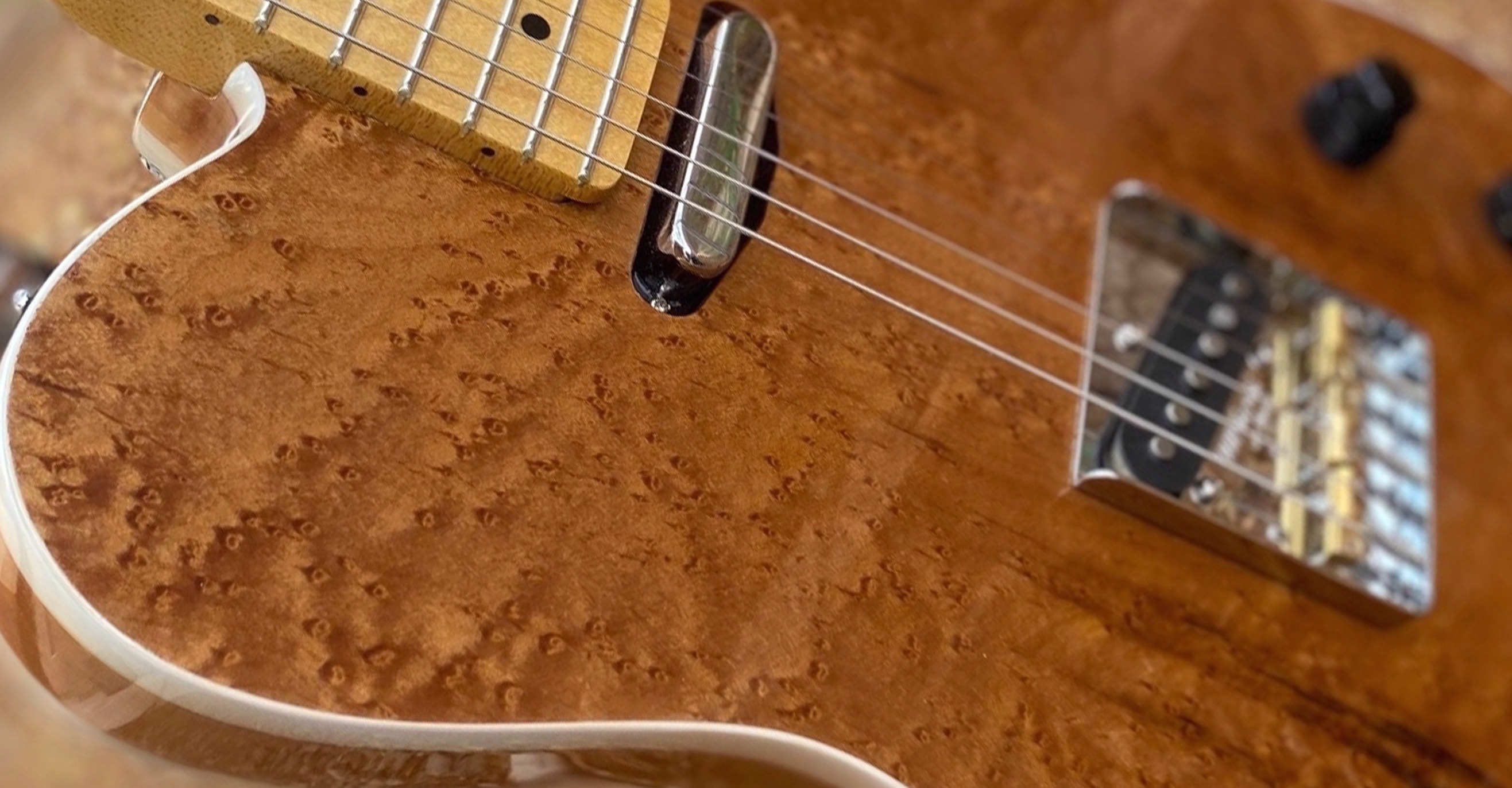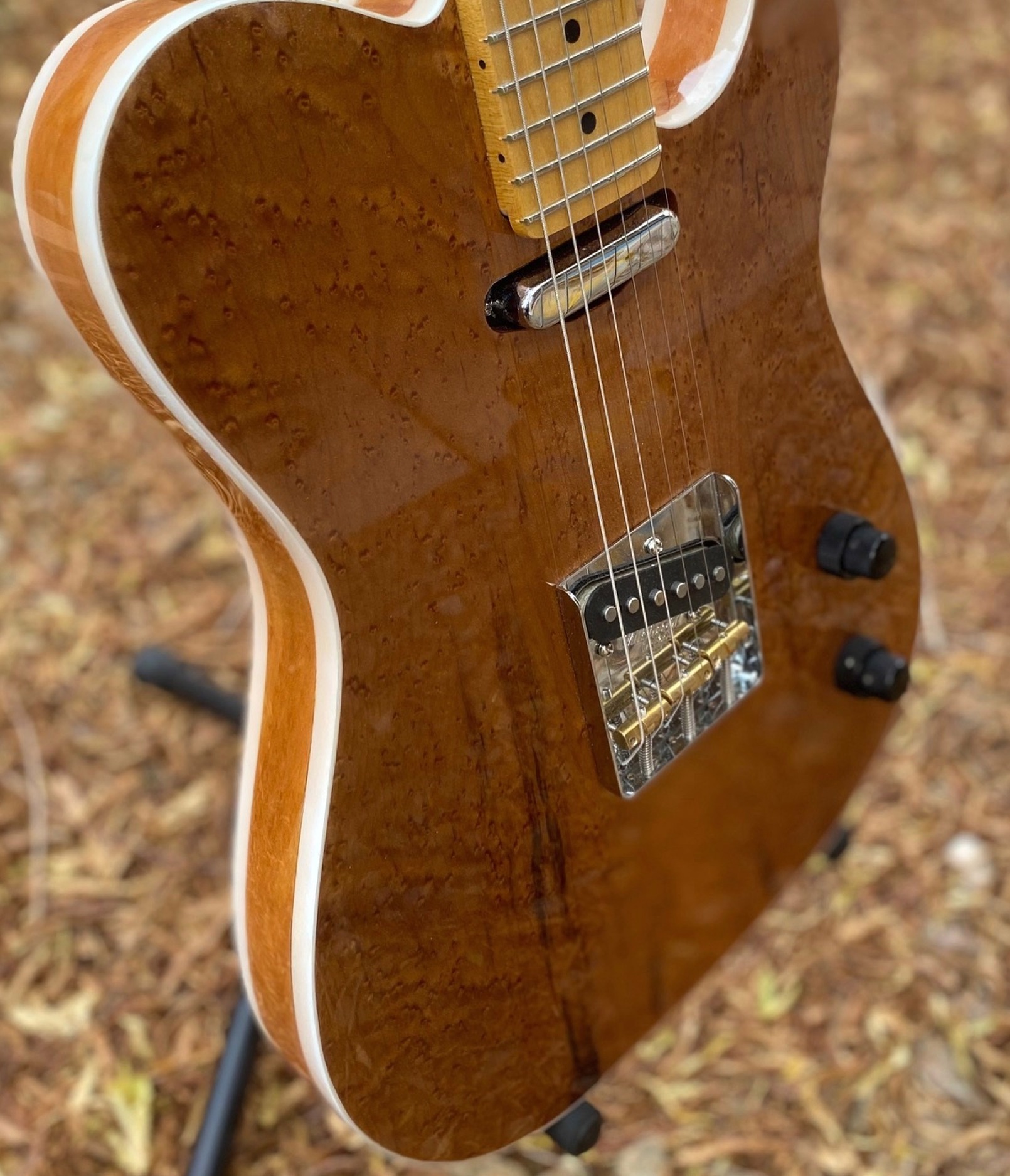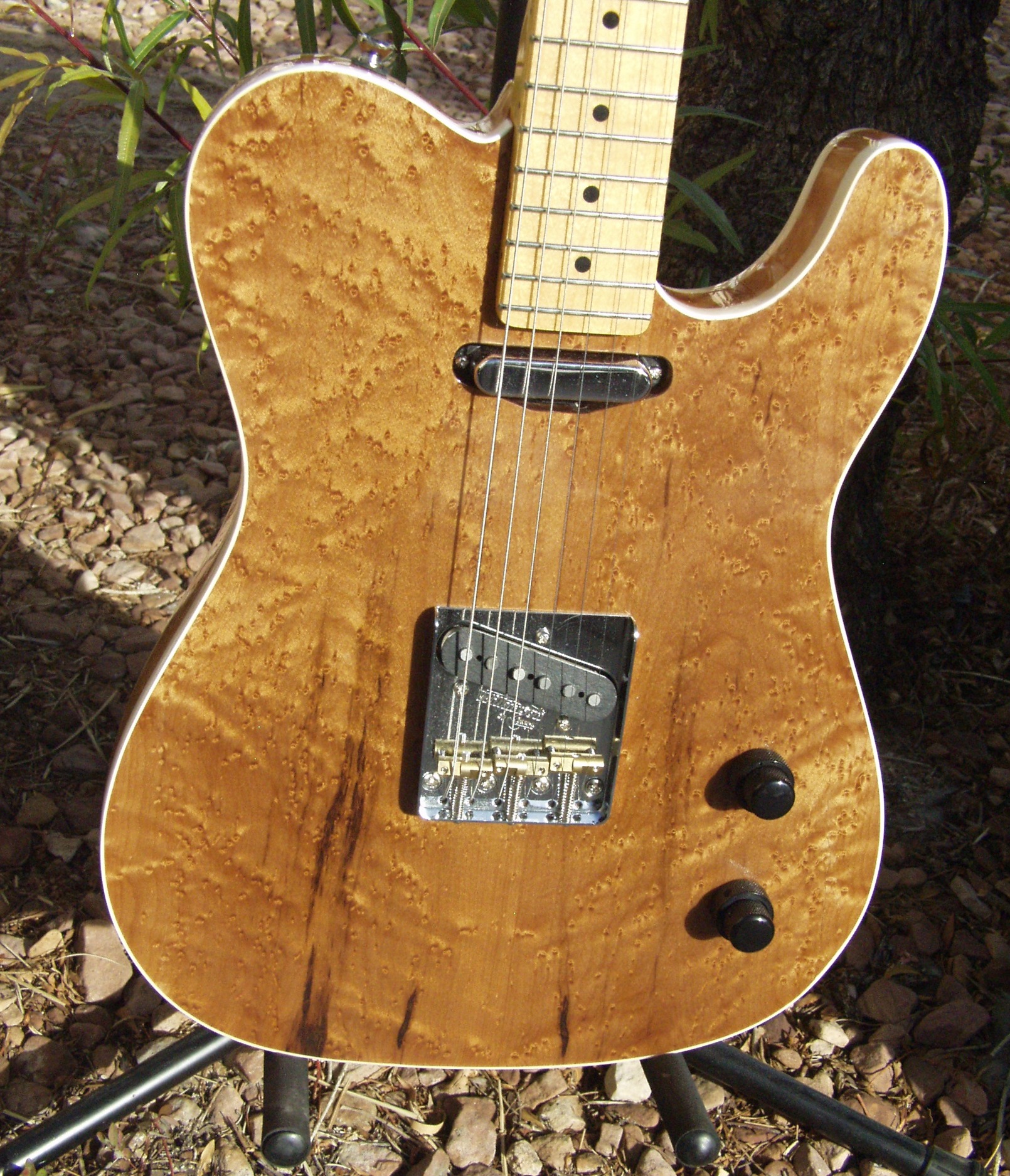 Click to enlarge Natural Finish, Birdseye Maple front, poplar core, 200 yr old Smoked walnut Bac. Double white binding, Maple neck and fret board